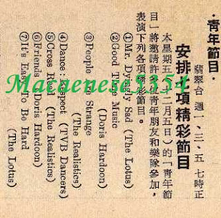 於明珠台「青春樂」節目及翡翠台「青年節目」、「歡樂今宵」節目中演出的一些昔日香港歌手、樂隊名字、人物及劇照 :